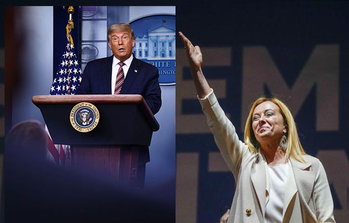 ↑圖說:川普與義大利總理梅洛尼(資料圖合併)。