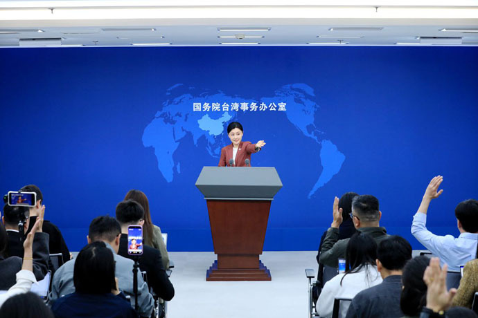 ↑圖說:國台辦發言人張晗主持本次新聞發布會(供圖)。