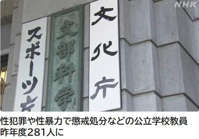 日本281名教職員受懲處 因性暴力或性犯罪受到懲處 連續12年超過200人